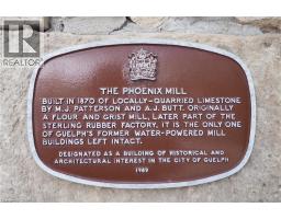 Public Remarks: FIRST TIME BUYERS OR SENIORS !! Establish your roots in this spacious 2-bedroom, 2-bathroom condominium located in the historic Phoenix Mill — a beautifully restored limestone building dating back to circa 1870. With only six other units in the building, this unique property offers both privacy and the ease of condominium living in a truly one-of-a-kind heritage setting. This bright main-floor suite features its own private entrance, approximately 980 square feet of living space, 9-foot ceilings with elegant crown molding, large deep-silled windows, and beautiful hardwood flooring throughout. The thoughtful layout includes a generous primary bedroom with double closets and a cheater door to the 4-piece ensuite, which offers a jetted tub and separate shower. The second bedroom is also spacious, with ample natural light and a double closet. A 2-piece guest bath and convenient in-suite laundry complete the floor plan, providing comfort and functionality. Nestled beside Howitt Creek, the Phoenix Mill offers a serene park-like setting surrounded by mature trees and benches, creating a peaceful outdoor retreat just steps from your door. Owners of this building also have access to the amenities at 358 Waterloo Avenue, which include a small fitness centre, party room, and outdoor BBQ and picnic area — perfect for enjoying gatherings with friends and family. This desirable location is directly across from the Speed River and the Royal Recreation Trail System, providing endless opportunities for walking, cycling, and connecting with nature. It’s also within walking distance to downtown Guelph, the River Run Centre, public transit, restaurants, shops, and offers quick highway access for commuters. A rare opportunity to own a piece of Guelph’s history in a heritage building that blends timeless architecture with the conveniences of modern living. (id:47351)