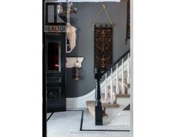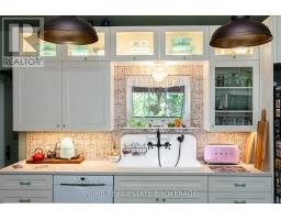 Beautifully maintained and steeped in history, this remarkable century home is believed to be one of the first 14 houses built in Exeter, double bricked by a Scottish mason, and built in 1856. The home exudes timeless Victorian elegance through an array of original and restored features, including wainscoting, 14" baseboard trim, crown molding, front screened doors and exquisite stained-glass windows. The main level offers a versatile bedroom/office with its own private entrance -ideal for in-laws/guests - conveniently located near a newly constructed 3 piece bath with a tiled shower. A renovated kitchen blends modern function with classic charm, featuring quartz countertops, custom cabinetry, and a large island, while a spacious and bright dining area is highlighted by a gas fireplace and vintage mantle. Original pocket doors transition to a living room accented by a striking stained-glass window and a beautifully refinished hardwood floor. The original front and renovated rear staircases lead to the upper level which offers 3 spacious bedrooms, including a primary with 2 walk-in closets, and two 3 piece bathrooms. Outdoors, relax on a large deck surrounding an above-ground pool(new cleaning system) and a hot tub while quiet evenings can be spent around the fire-pit or enjoying the tranquil fish pond, with ample yard remaining for entertaining or play. Peaceful mornings begin on the covered front or side porch, where the Gingerbread trim has been meticulously restored. A newer shed, garden, a single car garage with a steel roof, front and rear door access and a workbench ensure everyone in the family has space to tinker. Numerous updates completed in 2022 include a sump pump, furnace, central vac sweeper, electrical, roof (2023) and more. This is a rare opportunity to own an updated home where history-inspired design, rich character, and modern comforts come together in perfect harmony. (id:47351)