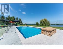 Exclusive executive waterfront estate offering over 200 ft of pristine frontage on the Ottawa River, located in the safest no-flood zone. This oversized bungalow features over 3,000 sq.ft. on the main level plus a fully finished 3,000-sq.ft. walkout basement, delivering exceptional space and panoramic river views.Designed for refined living and entertaining, the property includes a newly installed in-ground pool, triple garage, and seamless indoor-outdoor flow. Interior highlights include 10-ft ceilings on both levels, abundant natural light, and a rare layout where all three main-floor bedrooms feature private ensuites. A spacious executive office welcomes you, while the living room, kitchen, dinette, den, primary suite, and secondary bedroom all enjoy stunning water views. The walkout level offers a waterfront family room, game room, and home theatre.FRANÇAISDomaine exécutif riverain exclusif offrant plus de 200 pi de façade sur la rivière des Outaouais, situé dans une zone sécuritaire sans risque d'inondation. Ce bungalow surdimensionné propose plus de 3 000 pi au rez-de-chaussée ainsi qu'un sous-sol entièrement aménagé de 3 000 pi en rez-de-jardin, offrant des vues panoramiques exceptionnelles.Conçue pour recevoir et profiter pleinement du cadre, la propriété comprend une piscine creusée récente, un garage triple et une circulation intérieure-extérieure remarquable. L'intérieur se distingue par des plafonds de 10 pi aux deux niveaux, une luminosité abondante et une configuration rare où les trois chambres du rez-de-chaussée possèdent chacune leur salle de bain attenante. Le niveau inférieur complète l'ensemble avec salle familiale, salle de jeux et cinéma maison orientés vers le bord de l'eau. (id:47351)