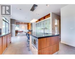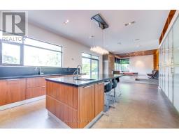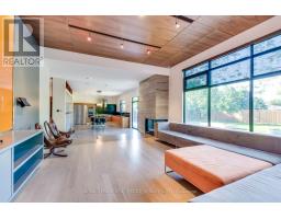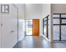Ultra-modern residence designed by renowned architect Guido Costantino, offering over 4,200 sq.ft. above grade on a 75 x 150 lot backing onto parkland. Exceptional craftsmanship, custom millwork, and high-end finishes throughout this complete luxury package.The primary retreat features an oversized walk-in with smoked-glass barn door, bonus room, spa-inspired ensuite with soaker tub, double-sided gas fireplace & entertainment centre. The Scavolini kitchen with top-of-the-line appliances opens to a spacious family room with gas fireplace, large island with seating & entertainment stations. A butlers pantry offers built-in espresso machine, wine fridge, custom cabinetry & sink. The formal dining room showcases an Escarpment Marble feature wall, perfect for entertaining.Additional highlights include a glass-enclosed main floor office, mudroom with custom cubbies & storage, main floor laundry with rolling baskets & sorting station, 5 bathrooms, and 3+1 spacious bedrooms. The lower level offers a gym, media room, children's craft room & ample storage.Premium finishes: radiant heated areas, light oak hardwood, porcelain & leather tile floors, Caesar stone counters, Blanco faucets, skylights, pot lighting, custom walls & ceilings. Smart home features include Ecobee thermostat & Ring video doorbell. Comfort systems: central vac, A/C, forced-air gas with air exchanger.Walking distance to Bronte Harbour, this home is the ultimate combination of luxury, design, and lifestyle. (id:47351)
