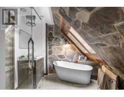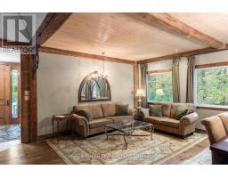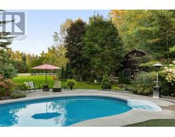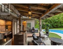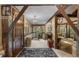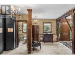 Discover a one-of-a-kind Barndominium that is a perfect blend of timeless luxury and rustic character. Nestled within a lush, tree-lined sanctuary, this property boasts 3.88 acres of meticulously maintained grounds, complete with circular driveway and attached garage. Relax outside in the in-ground heated pool, featuring a 9-foot deep end, accompanied by a rejuvenating hot tub. Entertain effortlessly in the full outdoor kitchen, situated under a striking barn beam enclosure, equipped with premium amenities including a Lynx double pro searer, outdoor fridge, quartz countertops, and a restaurant-quality stainless steel island cabinet. Spanning over 4,300 square feet, the residence showcases exquisite high-end finishes and original barn elements. The refinished wide-plank floors harmonize with limestone and porcelain tiles throughout the main floor. The chefs kitchen is outfitted with granite counters, top-tier Wolf appliances including 6 burner gas stove, warming drawer, in-counter deep fryer and steamer and Sub-Zero refrigerator and freezer. The four-season Muskoka room, complete with in-floor heating, serves as a tranquil retreat year-round. The primary suite offers engineered hardwood flooring, a spacious walk-in closet, and breathtaking 5-piece ensuite with extraordinary stonework, soaker tub and walk-in shower. Two additional hayloft bedrooms share a beautiful 4-piece bathroom, while a large finished loft presents endless possibilities as an extra bedroom, play room, or hobby room. The fully finished basement with garage access, features a wet bar and rec area with wood burning fireplace and full bathroom with a unique stone shower and laundry. Geothermal heating and cooling ensures energy efficiency throughout. Completing this remarkable offering is a versatile 30x20 barn equipped with water and hydro. With unlimited character and unparalleled privacy, this extraordinary Barndominium invites you to experience luxurious country living like never before. (id:47351)