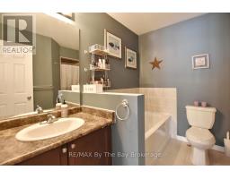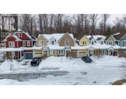 Enjoy private, peaceful living in the sought-after neighbourhood known as New England Village at the east end of Wasaga Beach. With its charming architecture and tucked away with no rear neighbours this spacious and beautifully maintained townhome backs onto a quiet walking trail with a treed setting and provides a sense of privacy and calm. The backyard is a true retreat, featuring mature trees, stunning perennial gardens, armored stone landscaping, stamped concrete walkways (2022), and inviting patio and deck spaces perfect for relaxing or entertaining. This bright and inviting townhome offers private parking with visitor parking close by, a single -car attached garage with inside entry and a true sense of community. As you enter the 1,700 sf living space plus fully finished lower level you will enjoy the thoughtful touches including a custom fireplace feature wall in the living room, high vaulted ceilings, main floor powder room, adjacent kitchen with stainless steel appliances and dining area with direct backyard access all blending comfort with elevated style. A spacious main floor primary suite offers comfort and privacy which includes a large walk in closet and 5pc bath. Upstairs a cozy loft offers lots of opportunity for office space or sitting area with the addition of two guest bedrooms and 4pc bath. Fully finished lower area provides more entertaining space with two media rooms, 4th bedroom and bathroom along with laundry facilities. This great family or lifestyle retreat is ideally located close to the new community arena and library, new high school with theatre, shopping and beaches meanwhile quick access to Barrie. Maintenance fees also provide worry-free living, covering lawn care, fall cleanup, common repairs, and exterior upkeep. This warm and welcoming year round home offers the perfect blend of space, style and thoughtfully designed for easy living. (id:47351)