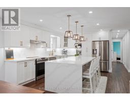 It's All Here! Everything on the wish list.....Fantastic neighbourhood, approx. 2500 sq. ft. of finished space, deep lot, 2nd kitchen plus stylish open concept layout. This bi-level home is updated throughout! Enter the spacious 17' x 6' foyer offering lots of room for coat & shoe storage, entrance to the garage & privacy for the main level from the front entrance. The open concept kitchen, living, dining room measures 24'4" x 22'4" & features a stunning white kitchen with Quartz counters, island with seating, gold coloured accents, deep sink, pantry cabinets & stainless steel appliances. Three bedrooms on the main floor and a renovated bathroom with double shower with glass doors, 2 sinks & black accents. The lower level features a huge kitchen with barn door that separates this area from the family room. A 4th bedroom plus an office/bedroom with a gas fireplace and a laundry room with wood counter that can be easily removed to access the washer & dryer. This level has a separate outside entrance that makes it a practical choice for in-law accommodations with some separation. The completely fenced rear yard is 165 ft. deep and offers a tool shed, vegetable garden & patio with a screened in gazebo. Situated in a desirable school district, close to the hospital & SMART shopping district. Easy access to the QEW & Hwy 406. (id:47351)