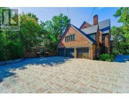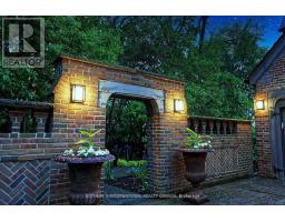 One and only. Nestled privately in Toronto's exclusive St Andrew enclave, appx 0.86-acre (37,507.72 sf) hillside ground adores the expansive tableland and magnificent residence that call for a unique and extraordinary estate collection. Appx 185ft frontage, 189ft west-depth, wider back 246ft, and exceptional 304 ft east-depth. An unparalleled geographical location provides breathtaking panoramic views and wraparound forest ravines. The Grand English Manor Revival Architecture boasts appx 10,000 sf sophisticated interior with 8,171 sf above grade. All three plus one storey encompasses 8 bdrm, 8 bath and a private chapel. Principal edifice rises tall with numerous entrances & three stairwells. Main foyer commands a significant open stair hall as first-class piece de resistance. Two-story windows grace opulent natural light. Gracefully pitched roofs, mullioned windows, and half-timbered facades. Antique fireplace with French imported fire-bench & hand-paint mantels. Allure of old world charm harmoniously coalesces with aristocratic refinement, intricate craftsmanship and sumptuous opulence. 2016 Bsmt Waterproof. Newer high-end appliances and high-efficiency equipment. Wolf 6-burner gas range, Sub-Zero fridge/freezer, dishwasher, LG washer/dryer, AQUECOIL hydronic heating, APRILAIRE humidifier, NTI water boiler, two owned HWT and two AC (2016). Redesigned STUDIO TLA landscape features easy to maintain sunny gardens & tremendous stone/ brick pavements. NICK DAY container cabana studio with bath & extensive deck. Multiple-level resistant wood/metal patios offer ample space for large gatherings. South golf greens broaden to wider land for potential pool & tennis court additions. Attach 3-car garage plus capacious driveway & courtyard to accommodate 33-cars.Two automated gates and custom corten steel panels enhance a secure and stylish outdoor living. A true masterpiece stands as a testament to discerning connoisseurs and the distinguished history of elite homeowners. (id:47351)