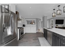 Welcome to this impeccably designed Lisgar residence, showcasing timeless elegance & exceptional attention to detail throughout. Thoughtfully renovated over the years (2018-present), this home offers over 3,000 sq ft of total living space, 4+1 bedrooms, 4 bathrooms, & a separate side entrance, ideal for extended family or potential rental opportunities. Make a glamorous entrance through the foyer, where gleaming tiles & pot lights lead into a semi-open concept main floor. The main level flows effortlessly from the separate dining room into a stunning chef's kitchen, featuring high end stainless steel appliances, Carrara style quartz countertops, a large centre island, abundant of cabinetry space w/glass accents, & a walkout to the lovely backyard. Overlooking the kitchen is a cozy family area designed for comfort where everyone can gather w/ease. A private staircase leads to an upper level living room that impresses w/vaulted ceilings, arched windows, & pot lights, centred around a stone feature wall w/a fireplace that adds warmth & charm. The main staircase, adorned w/a grand chandelier, guides you to the second floor primary suite that features a cozy fireplace, walk-in closet, & a spa inspired 4pc ensuite w/heated floors, his & hers vanity, a glass shower, & elegant accents throughout. The second floor includes 3 additional bedrooms each equipped w/its own closet space & share a 3pc bathroom. The fully finished lower level offers a spacious & versatile retreat, designed to impress with a sleek wet bar, games room, 5th bedroom, 3pc bathroom, & excellent potential for a private in-law suite. Step outside to enjoy a backyard oasis w/a fire pit, gas BBQ hookup, & hot tub, perfect for all four seasons. Complete with a dedicated laundry room, 2 car garage, & a driveway accommodating up to 4 vehicles, this residence is ideally located near Toronto Premium Outlets, prestigious golf & country clubs, Lisgar GO Station, schools, & more. This is a space to truly call home! (id:47351)