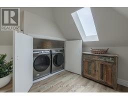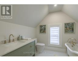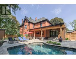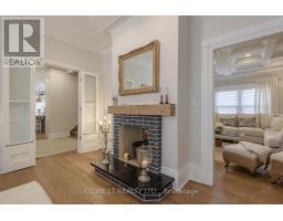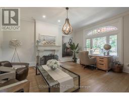 A truly one-of-a-kind, professionally restored home that blends timeless Victorian charm with modern luxury. This stunning residence features 10-ft ceilings on the main floor, pot lights throughout, and a custom-made kitchen with a high-end designer backsplash and a spacious walk-in pantry. Original details include elegant straw glass windows, many original glass-paneled doors (no locks), rounded wall edges, oak staircases, and beautifully preserved Victorian baseboards, crown moldings, and hinges. The living room features a classic wood-burning fireplace, while a striking gas fireplace connects the family room and dining room; perfect for both ambiance and warmth. Enjoy three expansive porches with cedar ceilings and pot lights, and a large separate garage with loft storage. The home boasts a floating staircase leading to the third floor, a skylight, coffered ceilings in the family room, and a third-floor teenager or nanny suite. All bathrooms include heated floors for year-round comfort, while the basement features in-floor heating, a quartz island bar, and a cozy entertainment space. Upgraded with 200 amp electrical service and a new water heater, this home offers over three full floors of living space plus a finished basement. Located just a 10-minute walk to downtown Oakville, this prestigious address offers character, warmth, and sophistication rarely found today. (id:47351)