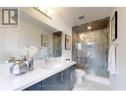 An exceptional opportunity to own a brand new, premium corner lot townhome offering 4 bedrooms and 3.5 bathrooms, thoughtfully designed with abundant natural light from over 20 Oversize windows. This home includes a double car garage plus additional driveway parking space, along with 2 balconies for seamless indoor-outdoor living. The ground level features a private bedroom with a 3-piece ensuite, ideal for guests, extended family, or a home office. The main living level showcases an expansive great room with walkout to a covered balcony, perfect for relaxing or entertaining. The chef-inspired kitchen is enhanced with stone countertops, an undermount sink, deep upper cabinetry, a dedicated microwave cabinet, gas line, chimney-style hood fan, and ample storage, with a second balcony just off the dining area-ideal for BBQs. Extensive upgrades include CAT6 wiring throughout, additional electrical outlets, island lighting rough-in, bidet-ready electrical in the primary ensuite, and upgraded plumbing including a fridge water line. Bathrooms are elevated with custom tile selections, stone countertops, shower niches, spotlighting, tiled shower ceilings, and premium finishes throughout. Stylish upgraded stair railings further enhance the modern aesthetic. The upper level is anchored by a spacious primary retreat featuring a walk-in closet and a spa-inspired ensuite with a glass shower. Two additional bedrooms and a beautifully finished main bathroom complete this floor. The highlight of the home is the spectacular 737sqft rooftop terrace, upgraded with lighting, electrical outlet, and hose bib-offering unobstructed 360C views, including downtown Toronto on clear days, and the perfect setting for summer entertaining. Situated in the highly sought-after Union Village community, surrounded by parks and trails, close to top-ranked schools, and minutes to Unionville GO, Hwy 404, and 407. Approx. $100,000 builder upgrades, this is a rare turnkey home that truly checks every box. (id:47351)