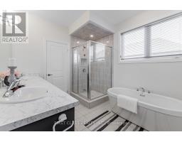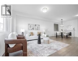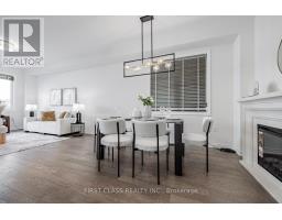 Stunning Deco Semi-Detached Home in the Sought-After Richlands Community. Leonard model 2,065 sq.ft. above-ground living space with upgraded two ensuite bedrooms. 9 feet ceiling on both floors creating a bright and airy atmosphere throughout. Modified Open-concept main floor is finished with elegant hardwood flooring and gourmet kitchen. Large centre island with quartz countertops, stainless steel appliances, backsplash and lots of kitchen cabinets, perfect for family gatherings. Cozy dining room w/gas fireplace. 4 spacious bedrooms and 4 modern bathrooms, including two ensuite bedrooms for ultimate comfort and privacy. Oak stairs and iron pickets. Fenced backyard w/deck and composite fence. Long driveway for 2 outdoor parkings. No sidewalk. Surrounded by top-rated schools, beautiful parks, Costco, Richmond Green Sports Centre, shopping plazas, and easy access to Hwy 404. (id:47351)