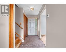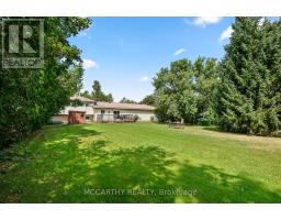Large Lot with Side split brick home, 3 levels bedrooms up Main Living Dining Room and Kitchen and lower has Rec room and laundry, Upper is Bedrooms and Bathroom Attached 3 car garage, with two and then one with interior wall between, could be a work shop, Man Cave. Family home with many opportunities to make your own. 3 inside parking plus paved Driveway with parking for 6 = 9 parking spots. Upper level has 3 Bedrooms, and a 4 pc bathroom. Kitchen with plenty of cupboards, Dining Room walks out to the large deck. Living room has big picture window. Lower level has Rec Room with wood stove for cozy winter nights. Laundry room with Storage space. large Crawl space great for storage. Some windows have been updated, Metal Roof and eavestrough guards. Air conditioning, Forced air gas heat. Walk to school very close. Beautiful large back yard with large deck. Mature trees. Great home for a growing family. (id:47351)