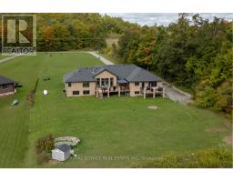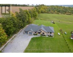 Set on just over two acres in the scenic hills of Cavan, 381 Sharpe Line is a custom-built, multi-generational home offering both privacy and functionality. This spacious residence features a total of six bedrooms, five bathrooms and two full kitchens thoughtfully designed to accommodate extended family living with a separate in-law suite with private entrance and separate deck. The main floor showcases a large, custom-designed kitchen with stainless steel appliances, granite countertops, and an oversized island that overlooks a bright living room with a floor-to-ceiling propane fireplace. Expansive windows invite natural light and reveal breathtaking views, with walkouts to a private deck. A separate dining room overlooks the front yard, while three bedrooms and three bathrooms provide ample space, including a convenient laundry area with garage access and a pass-through to the in-law suite.The lower level offers a versatile layout with two additional bedrooms, a three-piece bathroom, and an expansive family room complete with a bar area. Additional highlights include a custom wine cellar, exercise room, office or den, generous storage, and both front and back staircases. The in-law suite is fully self-contained and includes a custom kitchen, dining area, comfortable living room with deck access, large bedroom with double closets, and a four-piece bathroom with laundry. A two-car garage provides direct access to the home and features a separate man door. The large lot offers potential for a workshop at the rear. Located just 10 minutes from Peterborough, 5 minutes to Highway 115 and 20 minutes to Highway 407, this home also enjoys nearby access to Cavan Creek Park & Trails and local conveniences. This beautiful custom home is well-positioned for convenience while offering privacy and exceptional outdoor space. (id:47351)