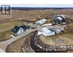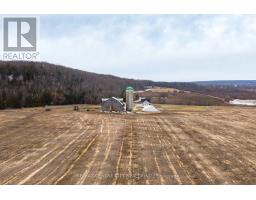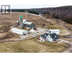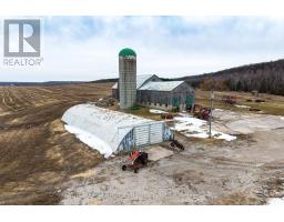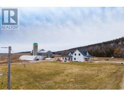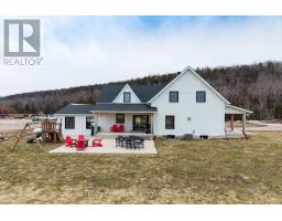 Located at the end of a quiet dead-end road, this 149-acre farm offers privacy and beautiful views, with the Niagara Escarpment as a backdrop. There are 143 workable acres with a large portion of this being systematically tiled.The original 1870 farmhouse has been fully updated in 2024 with nothing left untouched and offers a nice mix of character and modern features. Inside you'll find all the modern comforts you'd expect including forced-air propane heating, central air, and on-demand hot water. The kitchen includes a large island with seating for six and patio doors that lead to a spacious side deck. The main floor also features details such as the natural stone propane fireplace, deep window sills, and a powder room.Upstairs, there are three bedrooms, a four-piece bathroom with a soaker tub and glass shower, and a large laundry room.The attached garage includes a glass overhead door, large windows, and a finished concrete floor. The basement is clean, dry and spray foam insulated.Outside, there are covered verandahs, patios, a propane fire table, and a stone-lined creek that runs year-round. Additional buildings include a very large bank barn with high ceilings and tall doors for getting equipment in and out, a large Quonset hut measuring 38 x 100 ft with sliding end doors, and a 38 x 40 ft heated shop with a good concrete floor.Even though it feels tucked away, you're still close to it all-near the Bruce Trail, scenic lookouts, and snowmobile/ATV trails, Wiarton and Owen Sound are just a short drive away. This is a well-rounded farm property that offers a large piece of workable land and a completely renovated move-in ready home, a shop to work in and a large barn that could be fit for many different animals. This farm offers a peaceful setting; close to Georgian Bay. (id:47351)
