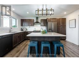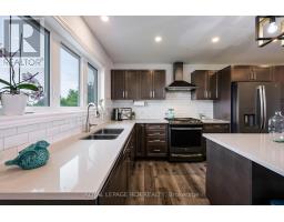 Welcome to this charming and thoughtfully designed raised bungalow featuring 3+1 bedrooms and 3 bathrooms in an ideal location on two paved roads, just minutes from town. Step into the inviting open-concept main floor, where the kitchen boasts durable vinyl flooring, sleek subway tile backsplash, a convenient pantry, and a modern hood range. The spacious living room offers luxury vinyl flooring, a cozy propane fireplace with a contemporary mantel, and a walk-out to a stunning 23' x 16' cedar deck, perfect for entertaining or relaxing outdoors. The dining area continues the open-concept flow, with large windows that flood the space with natural light. The primary bedroom features broadloom carpeting, a generous walk-in closet, and a private 3-piece ensuite complete with vinyl flooring and a luxurious rain shower. Two additional main floor bedrooms also feature soft broadloom and ample closet space. A stylish 4-piece main bathroom includes a relaxing soaker tub and a bright window for natural light. A laundry room can be found on the main floor with a convenient walkout to the 3 car garage. Downstairs, you'll find an ample finished space, designed to be a potential inlaw suite, with a recreation room and fourth bedroom featuring laminate flooring, a closet, and deep windows for plenty of natural light. Additional features include pot lights, a rough-in for a potential kitchen, a rough-in in the furnace room for a 2nd laundry area, GenerLink system, humidifier, and sump pump for added convenience. Walkup from the basement to garage. This home blends comfort and modern design in a family-friendly layout. Approx 2551 finished sq feet. (id:47351)