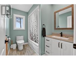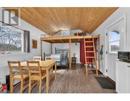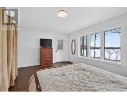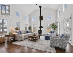 Welcome to 3855 Hideaway Lane, a rare waterfront sanctuary where privacy, luxury, and nature converge. Set on a breathtaking 5.8-acre peninsula with 2,798.4 feet of shoreline along the historic Rideau Canal at Dog Lake, this one-of-a-kind property offers uninterrupted 360-degree water views and complete seclusion just 25 minutes from Kingston. Arrive via a private laneway surrounded by water on both sides, leading to a stunning custom-built, 2-storey home finished in Marine Dusk vinyl siding. Built just 4 years ago, this meticulously designed residence features 2,100 sq/ft of living space and showcases soaring 17-foot ceilings in the spectacular great room, where floor-to-ceiling windows frame panoramic lake views and create an unforgettable living experience. The open-concept main floor is anchored by a gourmet kitchen with a granite island, seamlessly flowing into the expansive living and dining areas. Acentrally located WETT-certified woodstove adds warmth and ambiance, complemented by an energy-efficient heat pump/AC system. Premium finishes include Gunsmoke oak hardwood flooring,triple-glazed windows, and an ICF foundation with a dry, heated crawl space for additional storage. The home offers 3 bedrooms, including two on the main level and a private upper-level primary retreat featuring a walk-in closet, ensuite bath, and an enclosed sunroom overlooking the water. One main-floor bedroom, with its own entrance near the shoreline, presents excellent potential for an in-law suite or boutique B&B accommodation. Upstairs, a spacious media loft overlooks the Great Room below, enhancing the home's open, airy design. Additional highlights include an attached double-car garage with unfinished loft space, a 30-foot dock (year-round), and a forested landscape. A fully renovated waterfront bunkie set on a granite outcrop overlooking Milburn Bay. Complete with electricity, a woodstove, running water, and acomposting toilet, it is currently a successful Airbnb. (id:47351)
