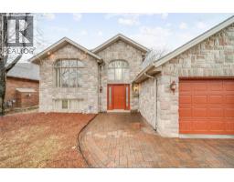 Prime South Windsor raised ranch approx. 1,900 sq ft featuring a beautiful stone front and full brick exterior. Bright open-concept living and dining areas with a spacious eat-in kitchen and patio doors leading to a large deck with gazebo. Offers 3+1 bedrooms and 3 full baths, including a 3-pc ensuite. Hardwood and ceramic flooring throughout (except games room). Cozy family room with gas fireplace and wood mantle. Large games room ideal for entertaining with grade entry to a landscaped yard featuring patio, shed, and storage under deck. Close to schools, shopping, and St. Clair College. (id:47351)