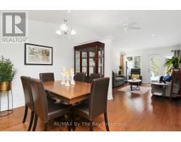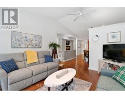 Stunning, mint condition end unit with all the extras! Enjoy the natural light from the extra windows, hardwood flooring, vaulted ceiling, beautiful upgraded eat in kitchen with quartz counters, loads of extra cupboards and lovely island, freshly painted, upgraded bathrooms (jet tub in one, gorgeous step in shower in the other) inside entry from extra deep drywalled garage, 2 bdrms, 2 bathrooms, unique very attractive division wall between dining and living room which features a walk out to deck overlooking nature with gas bbq connection, terrific awning and inground sprinklers. Play 9 holes at the on-site private golf course and take a dip in the inground pool too! Come and see for yourself! Don't miss this one, there's no work to do here, just move in and ENJOY! Land lease fee $800/mo + land tax $40.57/mo + structure tax $141.82/mo = $982.39 month for a new owner. (id:47351)