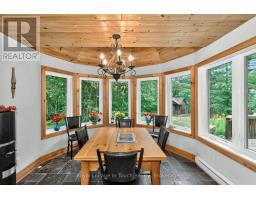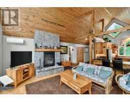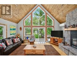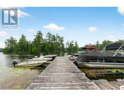 Welcome to 390 Island 360, a rare and remarkable offering on Hungry Island on beautiful Six Mile Lake. This island-access property spans nearly 19 acres, including a stunning 5.5-acre main parcel with 627 feet of natural shoreline and a beautifully built cottage featuring high ceilings, rich pine finishes, a cozy stone fireplace with insert, and Baseboard heating, and a AC window unit provides Cooling in the summer. Also included is over 13 acres of recreational land in the center of Hungry Island, an ideal setting for ATVs, hiking, and snowmobiling, with two well-defined trails and excellent winter access. A zoning exception permits the construction of a two-slip wet boathouse, and the property comes with a previously approved permit for an 800+ sq ft bunkie, offering even more potential. Conveniently, the sale includes an owned share of mainland parking and a boat slip just a minute away, making access simple and stress-free. Whether you're looking for a peaceful summer escape or a four-season adventure base, 390 Island 360 combines rustic charm, modern comforts, and endless recreational possibilities in one extraordinary package on Six Mile Lake. Ask Listing agent for copy of floorplans (id:47351)