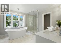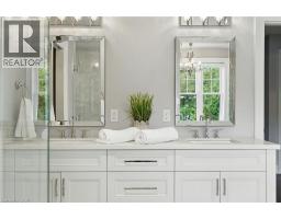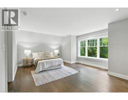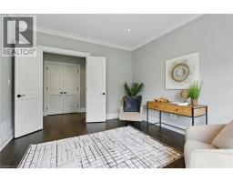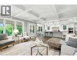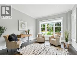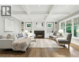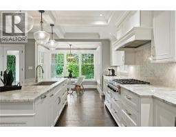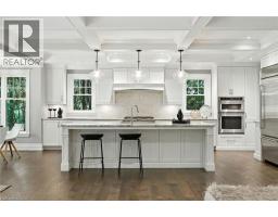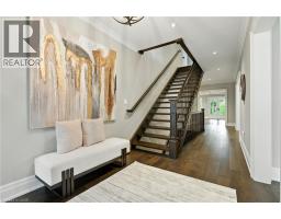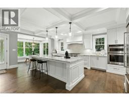 Custom-built in 2016 by M. Butler Custom Homes, this exceptional residence offers approximately 5,000 square feet of luxurious living space, showcasing premium finishes and superior craftsmanship throughout. Situated on a 217-ft deep, pool-sized lot backing onto the RBG Hendrie Valley Sanctuary, this home blends elegance with natural serenity. The gourmet kitchen features a large island with dual-sided cabinetry, sink and pendant lighting, along with built-in stainless steel appliances including a wall oven, gas cooktop, fridge and dishwasher plus a sunlit eat-in area overlooking the private backyard. Rich hardwood flooring spans the main and second levels, complemented by hardwood stairs, coffered ceilings, crown moulding and pot lights that add warmth and architectural detail. The private primary suite includes a luxurious spa-like ensuite and two walk-in closets with custom built-ins. A finished walk-out lower level adds flexible living space, offering a fifth bedroom, full bathroom, rec room and multi-use area perfect for an office, gym, craft room or playroom. An upper-level balcony off the great room extends the living space outdoors and features a gas BBQ hook-up. Additional highlights include oversized windows, engineered hardwood, central vacuum and full home pre-wiring for automation and audio/video distribution. Ideally located minutes from Aldershot GO Station, Highways 403 and 407, as well as nearby restaurants and shopping. Don’t be TOO LATE*! *REG TM. RSA (id:47351)