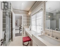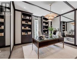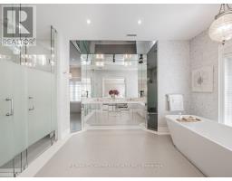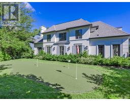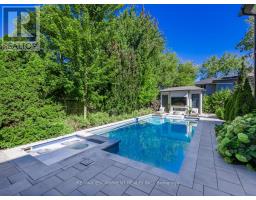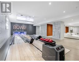 Nestled within one of Oakville's esteemed neighborhoods, this exceptional residence epitomizes luxury living. Boasting proximity to the lake, renowned schools, tennis courts, parks, and various amenities, this property offers a blend of convenience and exclusivity. Upon entering, guests are welcomed by an exquisite interior spanning over 5,000 square feet of above-grade living space. The detached home showcases a distinctive architectural design and impeccable artisanship, radiating elegance. Crafted to emulate a lavish retreat, the residence features an array of amenities including an in-ground pool, hot tub, backyard putting green, a meticulously landscaped outdoor area complete with a bathroom and shower. Inside this dream showhome offers ample space for entertaining. In the kitchen, grey-blue cabinets with black uppers pair beautifully with a sleek quartz countertop and backsplash for a modern industrial look. A two-storey hallway connects the kitchen to the rest of the main floor and offers drama of its own with rich velvet drapes and a series of French doors. Enjoy this one of a kind basement including a bowling alley, a gym room, open-concept media room and a 5th guest bedroom. Luxury Certified. (id:47351)
