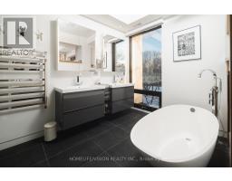 Discover architectural elegance in this custom-designed detached home situated in prestigious North Rosedale neighborhood. Experience seamless indoor-outdoor living with breathtaking nature views at historic Chorley Park, visible right from your doorstep and through the expansive floor-to-ceiling windows, offering a tranquil ambiance in the citys heart. This sophisticated 3-storey smart home features four luxurious bedrooms, each with a private en-suite bathroom, ensuring ultimate privacy and comfort. The ground level is a versatile space, perfect for an office or in-law suite, complete with in-floor heating, refrigerator, oven, dishwasher, en-suite bathroom, and laundry facilities-functioning as a self-contained unit ideal for guests or family members gourmet kitchen, with top-of-the-line appliances, flows effortlessly into the family room and out onto a stunning deck, perfect for entertaining with picturesque nature views. A private drive with a built-in garage offers interior access, featuring dual entrances from Douglas & Astley, ensuring convenience and security. This home's unparalleled view and location are unrivaled, making it a true architectural masterpiece. The third-floor loft suite, serving as the fourth bedroom, opens onto a stunning wrap-around terrace with sleek glass railings, providing panoramic and unbeatable views of downtown. This expansive outdoor space is perfect for entertaining guests or enjoying a tranquil retreat under the sun, making it an architectural highlight of the home. Office/Guest Suite & all Bathrooms have Hydronic heated floor.The location offers convenient and straightforward access to the ravine, as well as the popular Evergreen Brick Works, making it easy for visitors to explore these natural and cultural attractions. This home is the epitome of dream living, offering everything you could ever desire and more. (id:47351)