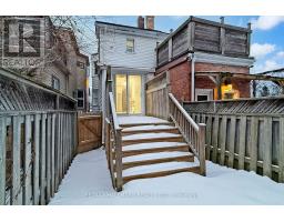 Welcome to 4 King Edward Avenue, 3 bedroom, semi-detached home on a professionally landscaped lot is in move in condition and set in a quiet, family friendly neighbourhood known for its community feel and everyday convenience. This well-cared-for residence in a prime Toronto location is in move-in condition and offers a functional layout with 3/4 inch oak hardwood flooring throughout both the main & second levels. This home presents an excellent opportunity for buyers to update and personalize. The main level boasts many windows, an open concept living/dining area with crown molding and pot lights, and the updated kitchen includes granite counters, white modern cabinets, s/s appl's, gas stove, tile backsplash, undermount lighting, a glass front display cabinet, a pantry, pot lights, new fridge and dishwasher.and a rough-in for a wash/dryer. Upstairs, the 2nd floor offers 3 bdrms, all with closets, hardwood flrs & a four-piece bath with updated cabinetry & granite countertop. The primary bedrm features a picture window, flat ceilings, & double closet storage. The finished basement features a three-piece bathroom, a recently renovated flex/laundry room with rough-in for fridge/stove, pot lights and a separate walk-up entrance to the backyard - offering excellent potential for future income possibilities / in-law suite. Recent exterior updates include new shingles on the front, back, and rear, brand-new eavestroughs and soffits, vinyl siding with a brick second storey, 100 amp service, flat roof installed in '20, and a newly-built 200 sqft (approx.) deck. Ideally located just a short walk to the subway! Adjacent to school/Glenhill park, shops, restaurants, farmers markets, and transit - all minutes away. Don't miss this fantastic opportunity! Hot water tank is owned. (id:47351)