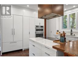 Welcome to this stunning 2-storey residence in the heart of Humber Valley Village, perfectly positioned on a quiet, family friendly street and offering ultimate privacy with its treed lot. Completely move in ready, this home combines thoughtful design, quality craftsmanship, and modern upgrades throughout. Step inside and be wowed by the open concept main floor (renovated in 2017), featuring a seamless flow between the living, dining, and kitchen areas - ideal for both everyday living and entertaining. The chef's kitchen impresses with high end JennAir appliances, Quartz counters, a large centre island with a custom walnut dining extension, and walk-in pantry. The living room boasts a gas fireplace, while the cozy family room at the rear overlooks the serene backyard and features a wood-burning fireplace. Plus mudroom with garage access, main floor laundry, and powder room complete this level. Upstairs, you'll find 5 spacious bedrooms, including a peaceful primary suite with a walk-out balcony surrounded by treetops, a walk-in closet, and a luxurious 5pc ensuite. Bedroom 2 features its own 4pc ensuite, while bedrooms 3 & 4 share a semi-ensuite bath - plus a versatile 5th bedroom perfect for a home office or lounge. The renovated lower level offers even more living space, with a bright rec/games room, gas fireplace with built-ins, wine cellar, gym, an additional bedroom with a 3pc semi-ensuite and steam shower, and generous storage rooms. Outside, enjoy a private backyard oasis complete with multiple lounging areas, a hot tub, and a storage shed. Major updates include a new roof (2023) and furnace/AC (2022) + emergency generator - all you need to do is move in and enjoy! Located in the coveted Humber Valley Village community, close to top-rated schools, parks, shopping, highways, and downtown Toronto - this home truly has it all! (id:47351)