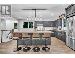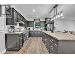 This raised brick bungalow delivers style, space, and privacy on a fully fenced corner lot with mature trees, backing onto a peaceful wooded area. Inside, the open-concept kitchen, dining, and living space is filled with natural light and features an updated kitchen with island, stainless steel appliances, and plenty of storage. New flooring and lighting throughout give the home a fresh, modern feel. The main floor offers a spacious primary bedroom, sparkling 4pc bath, and convenient laundry with 2pc bath. The walk-out basement adds a large rec room, additional bedroom, and access to a covered patio, while the generous deck and cozy front porch provide multiple options for outdoor living. Recent updates include kitchen reno, flooring, trim, paint, drilled well (2024). Metal roof for peace of mind and versatile workshop adds extra storage or hobby space. Just 5 minutes to Tillsonburg, this property blends modern comfort with country convenience. (id:47351)