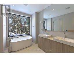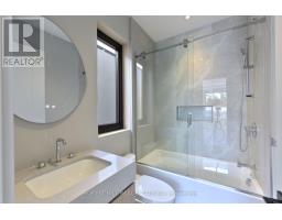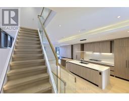 Experience refined luxury living in this stunning modern home on an exceptionally rare 27.5-foot lot. Boasting four bedrooms-each with a private ensuite-this residence blends modern living with everyday comfort. A heated foyer welcomes you into a living and dining area highlighted by wide-plank hardwood flooring and floor to ceiling windows. The house is operated by Control 4 smart home system and covered by security cameras.The gourmet kitchen showcases Miele built-in appliances including cooktop, oven, microwave, and integrated refrigerator with freezer, all complemented by soft-close cabinetry with Blum hardware and a striking waterfall island with a breakfast nook. The family room offers a 72" electric fireplace, built-in wall unit, surround-sound rough-in, and expansive patio doors opening onto a covered composite deck-perfect for year-round entertaining with BBQ rough-in and integrated speaker system.Retreat to the serene primary bedroom featuring a custom walk-in closet, integrated headboard with niche lighting, modern fireplace with TV rough-in, and a spa-inspired five-piece ensuite complete with heated floors and House of Rohl fixtures. Each additional bedroom includes its own ensuite and built-in closet.The fully finished basement is designed with radiant heating, a full custom kitchen with elegant AGT finishes, quartz surfaces, and a private bedroom suite-ideal for extended family or guests. With parking for up to five vehicles and exceptional craftsmanship throughout, this home defines contemporary elegance in every detail.Conveniently located in family friendly neighborhood, close to transit, grocery stores, variety of restaurants and easy access to the 401. (id:47351)