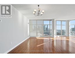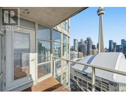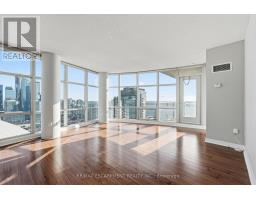 Stunning panoramic views of the lake and the city from this corner suite with floor to ceiling windows. Wow! This 2 bedroom + den, 2 full bathroom suite does not fail to deliver. Included are hydro, heat, air conditioning, water, 1 parking space and a locker! The Open concept living space offers a generous living and dining room and access to a balcony with upgraded interlock flooring overlooking the lake. The open kitchen offers granite counters, a peninsula and ample storage space. The generous primary suite offers lake views, floor to ceiling windows, a 4 pc ensuite and walk in closet. Rounding out this suite are a second bedroom with city views, a den with a barn door that can be your office or another bedroom, a 4 pc bath and in-suite laundry. Both bedrooms include black-out curtains. What more could you need? This building offers Superclub Amenities Including a Fitness Room, Indoor Track, Olympic sized Pool, Squash, Tennis, Bowling, Theatre, 24 Hour Concierge, Guest Suites, BBQs & more. Centrally located close To shopping, restaurants, Rogers Centre, Ripley's Aquarium, CN Tower, Scotiabank Arena, the Financial District and easy access to the Gardiner Expressway. You don't want to miss this one!! (id:47351)