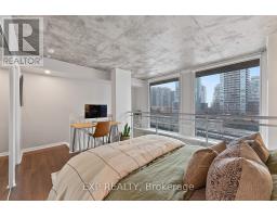 The Ultimate First-Time Buyer Loft In Toronto. Welcome To Electra Lofts-Where Owning A Two-Storey Loft Is More Than Just Owning A Condo. It's Owning A Rare And Architecturally Distinctive Piece Of Toronto Real Estate That Stands Apart And Holds Long-Term Value. This Move-In-Ready, South-Facing Two-Storey One-Bedroom Loft Is Located In A Highly Sought-After Boutique Building In The Heart Of King West. Thoughtfully Designed And Flooded With Natural Light, The Space Showcases Soaring 18-Foot Ceilings, Exposed Concrete Walls And Ceilings, And Dramatic Floor-To-Ceiling Windows That Define True Urban Loft Living.The Open-Concept Main Level Is Ideal For Entertaining, While The Upper-Level Bedroom Offers Privacy Along With Generous Storage. Step Out Onto Your Large South-Facing Balcony-Perfect For Morning Coffee Or Unwinding In The Evening. One Owned Parking Space And One Owned Locker Complete The Offering.Enjoy Unbeatable Convenience With TTC Transit At Your Doorstep And Some Of Toronto's Top Restaurants, Cafés, And Lifestyle Amenities Just Steps Away. Low Maintenance Fees Include Hydro, Heat, And Water, Making This An Exceptional Opportunity For First-Time Buyers, End-Users, And Investors Alike. (id:47351)