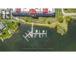 2,208 SQ FT PENTHOUSE WITH MASSIVE ROOFTOP TERRACE, PRIVATE BALCONY, 2 PARKING SPOTS, LAKE VIEWS & RARE PRIVATE DOCK SLIP! Heres your chance to own the crown jewel of Elgin Bay Club, a highly sought-after waterfront penthouse with over 2,200 sq ft of light-filled living space and jaw-dropping views of Lake Couchiching. This bright corner unit features an expansive private rooftop terrace with panoramic views of the lake and Orillia skyline, plus a balcony with a glass sliding walkout overlooking the marina, waterfront park, and downtown. Minutes to shops, dining, trails, parks, beaches, and a marina, this prime location is all about lifestyle. The kitchen offers white cabinets with some glass inserts, granite counters, a bold black/white tile backsplash, an updated built-in oven and cooktop, a large pantry and a breakfast nook. The expansive living and dining areas are anchored by a gas fireplace and feature dual furnace systems with separate heat controls. The generous primary bedroom includes a sitting area, a walk-in closet and a 4-piece ensuite with a glass shower, jacuzzi tub and massive vanity. A 4-piece main bath serves the second bedroom. Bonus second-level loft with a walkout offers added living space and flexible use. Newer vinyl flooring is featured throughout most areas, with in-suite laundry and ample storage adding everyday convenience. Two owned parking spaces, one underground and one outdoor, an exclusive storage locker, make daily living easy. Residents enjoy amenities including a party/meeting room, rooftop deck, community BBQ and visitor parking. Enjoy exclusive ownership of one of Elgin Bay Clubs rare private dock slips, as one of the few residences with this privilege, so you can pull up on your boat, store your kayak, and savour waterfront living! Fees include water, parking, building insurance and common elements. Opportunities like this are few and far between - make this rare waterfront penthouse your #HomeToStay before someone else does! (id:47351)