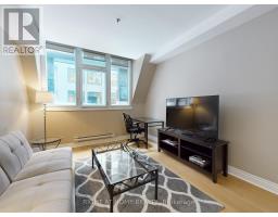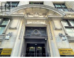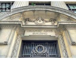Location, location, location! Welcome to the iconic Graphic Arts Building-a rare, heritage boutique building in the heart of Toronto's Financial District. Originally built in 1923 and converted to condos in 2003, this five-storey architectural gem features a striking limestone façade and Roman-inspired Ionic colonnade. Once home to Saturday Night magazine, the building now offers just 64 unique live/work residences.This furnished 1-bedroom suite showcases soaring ceilings, hardwood floors, and a bright open-concept layout. Enjoy a full-size kitchen with ample cabinetry and marble countertops, plus the convenience of ensuite laundry.Steps to cafés, world-class restaurants, and shopping (including the Eaton Centre). Unbeatable transit access-subway and street-level connections-plus quick reach to the waterfront, theatres, museums, and cultural hubs. Walk to Scotiabank Arena, hospitals, Nathan Phillips Square, and everything downtown has to offer. Walk Score & Transit Score: 100.Extras: Furniture, wall art, window blinds, light fixtures, stainless steel appliances (fridge, stove, built-in microwave/exhaust, built-in dishwasher), washer & dryer, sprinkler system. (id:47351)