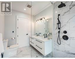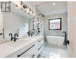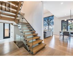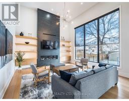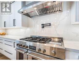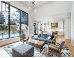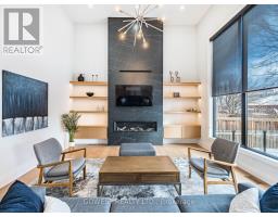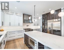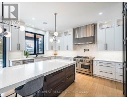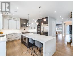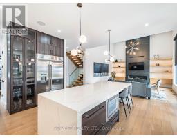 Welcome to custom luxury residence, located in the highly desirable Mineola neighborhood. This Home is a masterpiece of architectural innovation & modern luxury. 19 Ft Ceiling Foyer w/striking white oak staircase w/glass railings, sets the tone for the refined sophistication that flows throughout the home. High performance tripple-pane tilt & turn aluminum European windows flood the interior with natural light, accentuating the open-concept layout that is both functional visually stunning. The spacious living & dining areas are designed for both intimate gatherings & large-scale entertaining, featuring a sleek gas fireplace, 10 Ft Ceilings & designer lighting that adds warmth and ambiance. At the heart of the home is a dream kitchen custom designed with style and functionality. It is outfitted w/premium quartz countertops & quartz backsplash with an impressive waterfall island & high-end appliances. A butlers pantry offers additional prep space and custom-built storage. The extended cabinetry adds a refined touch, while integrated under cabinets lighting enhances the luxurious aesthetic. The kitchen overlooks a modern Family room with a 16 Ft ceiling and a showpiece gas fireplace with floor to ceiling Italian tiles. Premium quality engineered hardwood flooring on main and second floor. The primary suite is a private retreat, boasting a large balcony, a spa-inspired ensuite complete with a freestanding soaking tub, oversized rainfall shower, and dual vanity. A boutique-style walk-in closet with LED-lit custom cabinetry provides ample storage. The additional bedrooms are equally well-appointed, each featuring large windows, custom closets, and access to designer bathrooms w/heated floors & premium fixtures. The finished basement with premium vinyl heated floors and pot lights offers a large recreation room, gym, office/bedroom, bathroom cold cellar/wine room. Walk-Out from the basement takes you to a beautifly landscaped, fenced backyard with large stone patio. (id:47351)