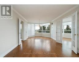 Perched high above the treetops with sweeping southeast views, this 1700+ sq. ft. Corner Suite "Cheshire" model offers the comfort of a bright, spacious home within Unionville's most prestigious condominium residence: Tridel's "The Hunt Club". From the moment you step through the grand lobby - complete with a 24-hour concierge, hotel-inspired finishes, and extensive amenities - you'll feel the elegance and ease of luxury living. A marble-tiled foyer opens to an expansive bright & sunny corner layout, where windows fill every room with natural light, complemented by blackout shades and roller blinds. Hardwood floors run throughout the main living areas and bedrooms. The large eat-in kitchen features exceptional counter space, pantry, pot lights, and a breakfast area with California shutters and a walkout to the balcony. The generous living and dining rooms are ideal for entertaining - bring your 'house-sized' furniture, there's room for it here! The sunny solarium makes a perfect den or reading nook, surrounded by greenery. This split-bedroom floor plan ensures privacy. The primary suite easily accommodates a king set, with three closets and a luxurious ensuite boasting marble floors and counters, walk-in shower, and soaker tub. The 2nd bedroom, located at the opposite end, has a double closet and its own full bathroom. There are 3 walkouts to a covered balcony at tree level for you to enjoy morning coffee in the sun. Additional features include ensuite laundry & storage space, a storage locker, and classic details like crown moulding paired with a modern, open design. This impeccably managed building is a Unionville landmark, with maintenance fees covering heat, hydro, water, internet, cable, building insurance, and full use of amenities. Walk to Markville Mall, groceries, GO Station, LCBO, community centre, and nature trails. Minutes to Main Street, Unionville, top-rated schools, and easy 407 & 404 Access. When only the best will do - The Hunt Club calls for y (id:47351)