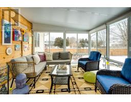 Oh Canada! This often noticed and admired bungalow is a gem that offers a warm feeling of home and a pride of ownership. Upon arrival, the 5 car paved driveway make arriving easy and the large front porch is wonderful for greeting neighbours. Inside, the layout offers spacious kitchen, perfect for the family chef and is then open to the living/dining combo and a beautiful sunroom with a freestanding gas fireplace overlooking the yard. The main floor primary bedroom is spacious and houses a 3 pc ensuite and walk in closet. A second bedroom, 2nd bathroom and a separate laundry room complete the main level. The lower level is beautiful with a huge rec-room, 3rd bedroom, 3rd full bathroom and both a workshop/hobby area, utility area and large storage area. Heading outside, you will find a lovely manageable rear yard with private gazebo patio area, raised garden boxes, and a wonderful array of perennial flowers, and established fruit and vegetable gardens with many returning every year. In recent years there have been updates and improvements including windows, doors, furnace, A/C, plumbing and a complete basement renovation with new ceilings, lighting, flooring and more. Located close to all of Kingston's west end amenities as well as schools and bus routes and public transit. All appliances and the utility bills are very reasonable. The house that Pride built! (id:47351)