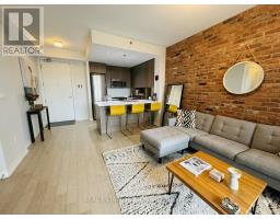 Not your typical 1-bedroom. Prime Leslieville location. This standout unit at Showcase Lofts delivers a rare combination of features, starting with a wider-than-average layout that offers a more functional, comfortable living space-ideal for entertaining, dining, or working from home. Modern finishes blend seamlessly with authentic loft character, including 9-ft smooth ceilings, engineered hardwood flooring, and a reclaimed brick feature wall that adds warmth and texture. The kitchen is both stylish and practical, featuring quartz countertops, stainless steel appliances, under-cabinet lighting, built-in wine rack, oversized under-mount sink, breakfast bar, and a gas stove-a true rarity.The bedroom is equally impressive with a walk-in closet, floor-to-ceiling windows, custom blinds, and a double walk-out to a large northwest-facing balcony overlooking the landscaped courtyard-quiet, private, and highly usable.Includes parking and locker.Well-managed building with full amenities: concierge, gym, party room, theatre/media room, guest suites, BBQ area, and visitor parking.Steps to Queen East's cafés, restaurants, and boutiques, with easy access to transit and the DVP. A rare opportunity for buyers seeking more than the standard layout. (id:47351)
