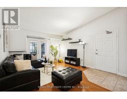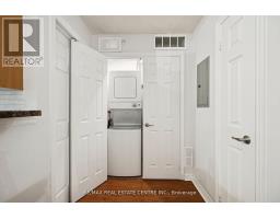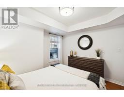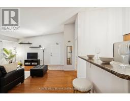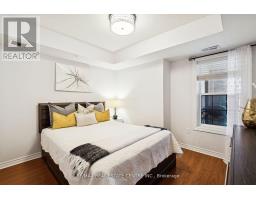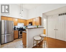 This beautiful top-floor one-bedroom + den condo feels open and airy with its cathedral ceilings and upgraded laminate floors. The kitchen is family sized, with stainless steel appliances, a breakfast bar, and plenty of space for cooking and storage. The living and dining area flows nicely to a large balcony. Large primary bedroom plus a separate den that's ideal for a home office/baby room, and your own in-suite laundry. No-carpet. There's also a storage locker for your extras. Located on the quiet side of the building, close to the elevator, this home is in an excellent school district and offers quick access to the 401, GO Station, Art Centre, Community Recreation, Library, Cineplex, Grocery stores and nearby shops. A perfect spot for anyone looking for peace, practicality, and a great location - all in one. (id:47351)