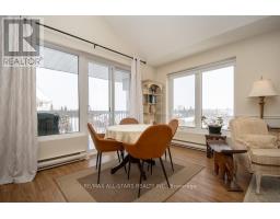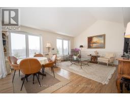 $1,328 MonthlySun-filled with great views! Ideally situated, this corner-unit penthouse offers one of the best locations in the building! With 2 bedrooms & 2 full washrooms, this lovely unit also features 11' vaulted ceilings in almost all rooms, making the 1135 sq/ft feel even more spacious & airy. The bright living/dining area offers both patio doors leading to a spacious balcony with sunrise & river views, as well as a wall of large windows overlooking the river, boat docking area, and the beautiful, historic Rivermill clubhouse. The large primary bedroom has a walk-in closet and a full ensuite with soaker tub & separate step-in shower. There is updated flooring in the living room, kitchen and hallway, newer vanities in both washrooms, and a fresh, neutral paint colour throughout. All utilities are included in the monthly condo fees, as well as the use of the lovely landscaped grounds, the heated indoor pool & saunas, the billiard and exercise rooms, the tennis court, many social/gathering rooms, and the lovely rooftop patio overlooking the river. This building is pet friendly (with restrictions), and one underground parking space and a storage locker are included with this unit. Additional parking and a boat slip are available for very reasonable additional fees. Everything you could want in a secure, low-maintenance lifestyle can be found here! (id:47351)