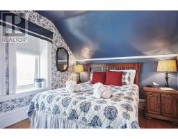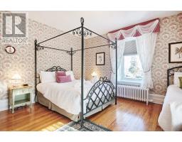A cherished piece of history has arrived to market. This spectacular 3 storey (circa 1830, as per MPAC) straight coursed stone home was originally built by members of Colonel McDonell's family (Colonel of Fort Wellington). This home is proudly positioned on a 1/2 acre of property within the Fort Town. An extensive addition by Denis Higgins in 1909 transformed this home to a level of opulence with the addition of a spectacular dining room and butler's pantry, a large kitchen, porches (later to be all enclosed) and the carriage house. Further upgrades have been completed over the years. The moment you enter home you instantly feel connected to the Loyalist roots. Solid oak panelled walls, woodwork, banisters & finishings have been meticulously crafted. The dining room has a hand-painted silk ceiling, while the living room has bevelled glass pocket doors, a parlour coal stove(now gas) with the original marble hearth and vintage tin ceiling on the second floor. Boasting 11 beds, 9 baths, 5 fireplaces, a detached "carriage house", lovely stone patio, inground pool, and enclosed wrap around verandah (tea room). There isn't another home quite like this in the area. Currently operating as the Colonel's Inn Inc., this turn-key opportunity with an established business is yours to carry on or occupy as a family home, or perhaps a multi-generational home. In previous years, the enclosed front porch operated as an Antique Store ... a home based business. There is a full basement which offers the laundry area, storage for the Inn supplies ( which includes linens), a mechanical room, workshop, storage, office and a 4 pc. washroom. Located two blocks from the Majestic St. Lawrence River, the Sandra Lawn Harbour, Amphitheatre , and downtown core. Centrally located to Highways 401, 416 and the USA International Bridge. (id:47351)