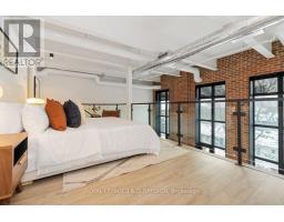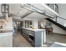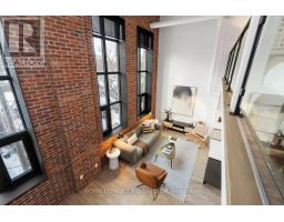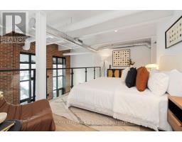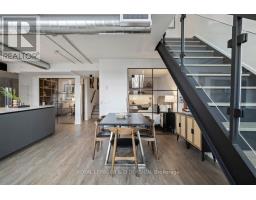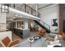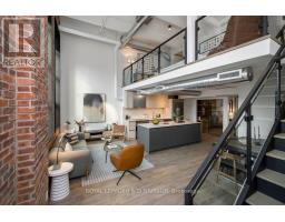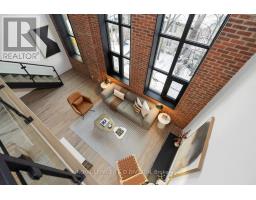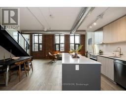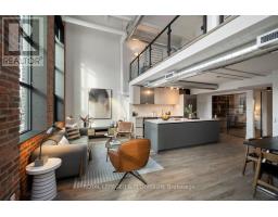 $1,060.38 MonthlyA true two-level heritage loft that actually lives the way loft buyers want it to, offering 1,478 square feet with exposed brick, large industrial windows, and a bright open main level where kitchen, dining, and living flow comfortably together around a central island with integrated wine storage. Custom electric blinds provide easy control of light and privacy throughout the day. The layout offers real separation, with a separate den and a flexible second bedroom featuring extensive built-in millwork on the main level, while the upper level is dedicated to a private primary suite with a large walk-in closet overlooking the space below. Storage is thoughtfully integrated throughout, complemented by parking with a dedicated EV charger and a storage locker on the same floor as the suite. Amenities include 24-hour concierge, rooftop terrace with BBQs, party room, coworking lounge, gym, and dog wash. Quietly set on Logan Avenue in an established pocket of Leslieville, close to cafés, local shops, and convenient transit. (id:47351)