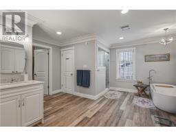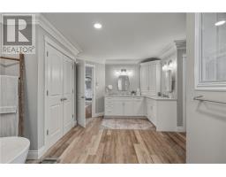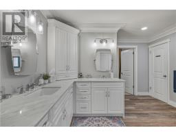 Welcome to 41 Bonnie Drive, a stately all-brick and stucco estate just 15 minutes from the South End. Built with exceptional craftsmanship by Bob Ethier & Sons, this elegant two-storey home offers nearly 6,000 sq. ft. of finished living space, blending timeless design with modern comfort. Set on a beautifully landscaped half-acre lot backing onto peaceful, undeveloped forest, the property offers both privacy and natural charm. The large interlocked driveway parks 12+ vehicles and leads to a fully finished three-car garage, plumbed for heat, an ideal northern luxury. Multiple patios, a composite deck, and a gas BBQ hookup create inviting outdoor living spaces. This meticulously maintained home has been extensively upgraded, including a new furnace and A/C (2021), roof (2017), and windows (2024). Inside, a grand foyer introduces custom plaster crown moldings, hardwood, porcelain, and luxury vinyl flooring, with windows filling each room with natural light. The formal dining room is perfect for hosting, while the main-floor office and spacious family room offer comfort and functionality. The timeless kitchen features stone counters, a large island, stainless steel appliances, a pantry, and an adjoining mudroom. Upstairs, the impressive primary suite spans roughly 900 sq. ft. and includes a private sitting room/gym/office, a soaker tub, walk-in tiled shower (2023), heated floors, and dual water closets and vanities. Three additional bedrooms, each with walk-in closets and ensuites. A dedicated laundry room completes the upper level. The fully finished lower level includes two large dens, offering great potential for extended family, guests, or a nanny suite. With the option to add a second entrance, the basement could easily be converted into a secondary unit. Built in 2005 on a solid poured foundation, this remarkable home offers over 4,000 sq. ft. above grade plus a finished lower level, presenting a rare opportunity for refined living in a serene natural setting. (id:47351)