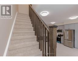 Welcome to this very bright and spacious 1840 sq. ft. home located in one of Hamilton's newest and most sought-after neighborhoods. This beautifully maintained original-owner property offers 3 bedrooms and 4 washrooms with thoughtful design and over $25,000 spent on recent upgrades, including fresh paint, new carpeting, and new pot lights throughout. The main floor features a generous family room with pot lights, elegant French doors, and a 4-piece washroom, offering excellent rental or in-law suite potential, along with direct garage access and a dual entrance. The second level showcases a huge open-concept living and dining area with 9-ft ceilings, paired with a chef's delight kitchen featuring stainless steel appliances, quartz countertops, and a stylish backsplash. The breakfast area, combined with the kitchen, opens onto a private balcony, creating the perfect space for morning coffee or outdoor relaxation. The third level offers a spacious primary bedroom with a walk-in closet and 4-piece ensuite, along waith two additional well-sized bedrooms and convenient upper-level laundry. Situated on a no-sidewalk lot, this home is ideally located close to plazas on both sides with all major grocery stores and everyday amenities just steps away-ideal for modern family living. POTL fees $89.99 for common area and snow cleaning (id:47351)