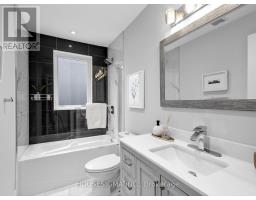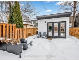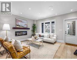 A rare legal duplex opportunity, this fully renovated semi-detached home delivers stylish, move-in-ready living on a quiet, prestigious street in one of Toronto's most desirable family neighbourhoods. An enclosed front foyer leads into a sun-filled main floor featuring engineered hardwood flooring, pot lights, and built-in ceiling speakers. The inviting living area is highlighted by a sleek electric fireplace and large picture window. The stunning gourmet kitchen serves as the heart of the home, offering a waterfall quartz island, matching quartz countertops and backsplash, and a layout that overlooks the backyard-perfect for entertaining and everyday living. Upstairs offers three generously sized bedrooms. The primary retreat is elevated with its own electric fireplace and a fully remodelled ensuite completed in 2024, featuring a modern stand shower. A second full bathroom completes the upper level with style and convenience. The fully finished basement with a separate entrance adds exceptional versatility, offering a spacious open-concept family room, second kitchen, large bedroom with ample closet space, and a full three-piece bathroom-ideal for extended family, guests, or potential rental income. Outdoors, the home continues to impress. The backyard is designed for both relaxation and entertaining, featuring a large deck, low-maintenance turf grass, and a new fully powered modern studio with expansive glass doors that open seamlessly to the yard. Whether used as a private home office, creative studio, gym, or quiet retreat, it offers a flexible space rarely found in the city. Additional upgrades include new roof, waterproofing, eavestroughs, and downspouts. Located steps to top-rated schools, parks, transit, and local amenities, this turnkey home offers the perfect blend of comfort, flexibility, and urban convenience. (id:47351)
