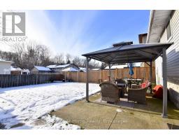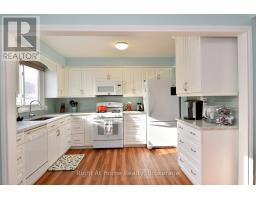 Situated in a desirable neighbourhood, this beautifully maintained raised bungalow is perfect for a family or empty nesters! The oversized 27' x 27' detached garage has an approximately 2 year old roof, hydro and is insulated for year round use and offers a perfect spot for hobbies or a workshop. Bright and airy throughout and decorated in neutral colours, this home is in move in condition! The main floor offers a large living room and dining room with hardwood floors, a modern kitchen with an abundance of cupboards, quartz countertops, updated appliances and luxury vinyl flooring, 3 spacious bedrooms and a modern 4 piece bath. The lower level offers a cozy family room featuring a gas fireplace for chilly winter nights. A 4th bedroom, a recently completed 3 piece bathroom with a shower, laundry room and storage room complete the lower level. The fully fenced rear yard offers a patio with a gazebo, gas bbq hookup and pretty gardens. The stamped concrete driveway provides parking for 4 vehicles. Just minutes from shopping, schools, seniors' centre, parks, waterfront and restaurants! (id:47351)
