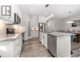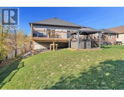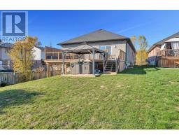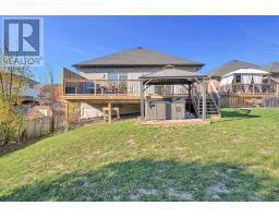 Built in 2019, this all-brick 4 bed, 3 bath home offers a perfect blend of newer home comforts and low-maintenance living. Set in the ideally located and sought after Tackaberry Ridge subdivision, it's the ideal home for families or those looking to retire beautifully in a welcoming, lock it-and-go neighbourhood. Step inside to a bright and airy main floor with 9' ceilings and an open-concept layout designed for easy living and entertaining. The inviting living room features a cozy gas fireplace and bright patio door that fills the space with natural light. The custom kitchen impresses with stainless steel appliances, hard-surface countertops, a seated island, and a deep walk-in pantry, while the adjacent dining area makes family entertaining easy. The spacious primary suite is a private retreat, complete with a beautifully featured ensuite with built-in cabinetry, a glass-and-tile shower, and a large walk-in closet. A patio door leads directly to a deck and private hot tub area, your own personal escape. A second main-floor bedroom is perfect for a nursery, office, or den, while a 4-piece bath and convenient laundry room with garage access add to the thoughtful layout. The lower level offers bright and inviting additional living space and is perfectly laid out for kids. Two bright bedrooms with on-grade windows share a pass-through walk-in closet, and a great full bath with double sinks and plenty of storage, making busy mornings a breeze. Outside, the covered front porch overlooks peaceful green space, while the generous backyard features a large elevated deck, gas BBQ hookup, pergola, and hot tub area for year-round enjoyment. The deep single garage and double-wide driveway add great utility. Located steps from parks, schools, and the recreation centre, this move-in-ready home blends comfort, quality, location and community in one perfect package. (id:47351)