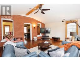 This inviting century home offers three bedrooms and one and a half bathrooms, including a convenient main floor bedroom and a primary suite equipped with a private two-piece ensuite. The property features a durable metal roof and classic brick construction, ensuring lasting curb appeal and easy maintenance. Set on an expansive double L-Shaped Lot with two driveways accessing two roads, the home provides ample space for outdoor activities, gardening, or future expansion. During the warmer months, enjoy the above-ground pool and private deck, perfect for entertaining or relaxing in the sun. Inside, you'll find a large, open-concept kitchen designed for family gatherings and culinary creativity. The spacious main floor includes both a living room and a family room, offering plenty of room for relaxation and hosting guests. This remarkable property blends timeless character with modern comforts, presenting a rare opportunity to own a home with generous living space and exceptional outdoor amenities. Walking distance to town. (id:47351)