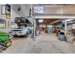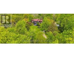 PLEASE WATCH VIRTUAL TOUR! Private 22-Acre Estate with Architecturally Striking Viceroy Home and Commercial-Caliber Shop. Perfect quiet country location yet only minutes to 401 and 407. Set well back from the road at the end of a long private drive, this stunning Viceroy bungalow offers approximately 3,500 sq ft of bright, vaulted living space. A spectacular 2-acre spring-fed pond, complete with its own island, creates a truly idyllic setting. The spacious primary suite features a private ensuite and walkout to a deck overlooking the water. Vaulted ceilings, skylights, and expansive windows flood the home with natural light.Strikingly impressive heated porcelain floors run through the foyer, hallway, kitchen, and dining areas. The kitchen is equipped with high-end appliances including a Jenn-Air downdraft cooktop. Main floor laundry adds convenience. Step out to a huge multi-level deck with Tiki bar and integrated heated pool, designed for entertaining and summer relaxation. The bright walkout lower level offers additional living space, workshop area, and excellent in-law suite potential. Geo-thermal heating and cooling provide efficient year-round comfort. Strong drilled well with UV system. High and dry construction with no sump pump required. Massive 40' x 50' heated shop featuring 15' ceilings, vehicle hoist, 1,000 sq ft mezzanine, two 10' overhead doors, and wood/propane furnace. Serviced with 100-amp electrical. Seller currently operates a 3-phase equipment setup. Attached 12' x 40' greenhouse. A rare opportunity combining private rural luxury with serious contractor or trades capability, all just 5 minutes to Hwy 401 and under an hour to downtown Toronto. Fibe high speed internet, work from paradise. (id:47351)