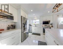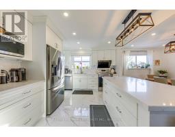 Welcome to this beautifully renovated detached sidesplit located on a quiet, family-friendly crescent in desirable West Oakville. This bright and modern home features an updated kitchen with custom white cabinetry, quartz countertops, a large centre island, stainless steel appliances, and designer lighting, flowing seamlessly into the open-concept dining and living areas highlighted by wide-plank hardwood flooring, pot lights, and oversized windows. The upper level offers three well-proportioned bedrooms and updated bathrooms finished in timeless neutral tones, while the lower level provides a cozy family room with electric fireplace and large above-grade windows, ideal for a media room, home office, or additional living space, plus a partially finished basement for storage or flexible use. Additional features include central air conditioning, forced-air gas heating, landscaped front yard with walkway, in-ground sprinkler system, finished laundry area, private driveway, and attached garage. Conveniently located minutes to Bronte GO Station, QEW and Highway 403, Bronte Village, parks, schools, shopping, and the Oakville waterfront, this move-in-ready home offers comfort, style, and an exceptional neighbourhood for families or professionals alike. (id:47351)
