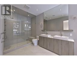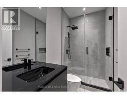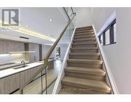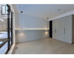 Experience refined luxury living in this stunning modern home on an exceptionally rare 27.5-foot lot. Boasting four bedrooms-each with a private ensuite-this residence blends modern living with everyday comfort. A heated foyer welcomes you into a living and dining area highlighted by wide-plank hardwood flooring and floor to ceiling windows. The house is operated by Control 4 smart home system and covered by security cameras.The gourmet kitchen showcases Miele built-in appliances including cooktop, oven, microwave, and integrated refrigerator with freezer, all complemented by soft-close cabinetry with Blum hardware and a striking waterfall island with a breakfast nook. The family room offers a 72" electric fireplace, built-in wall unit, surround-sound rough-in, and expansive patio doors opening onto a covered composite deck-perfect for year-round entertaining with BBQ rough-in and integrated speaker system.Retreat to the serene primary bedroom featuring a custom walk-in closet, integrated headboard with niche lighting, modern fireplace with TV rough-in, and a spa-inspired five-piece ensuite complete with heated floors and House of Rohl fixtures. Each additional bedroom includes its own ensuite and built-in closet.The fully finished basement is designed with radiant heating, a full custom kitchen with elegant AGT finishes, quartz surfaces, and a private bedroom suite-ideal for extended family or guests. With parking for up to five vehicles and exceptional craftsmanship throughout, this home defines contemporary elegance in every detail. Heated Front Steps melt the snow away. Conveniently located in family friendly neighborhood, close to transit, grocery stores, variety of restaurants and easy access to the 401. (id:47351)