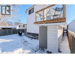 Freshly updated & move-in ready! This 4-bedroom, 3 bath home has two kitchens, recreation room, 2 laundry areas and a separate entrance, offering a versatile layout to accommodate your large family, extended family, or the possibility to generate rental income. The double-wide driveway fits 2 vehicles and leads to a front deck and large enclosed porch. Inside, the foyer opens into a bright open concept living/dining space featuring new ¾” hardwood flooring and high ceilings throughout the main level. The main floor includes 3 bedrooms, all with hardwood, plus a new 4-piece bathroom with porcelain flooring, a soaker tub, and tile surround. The new eat-in kitchen features quartz countertops, ample cabinetry, hardwood flooring, and a quartz breakfast bar. It also provides access to a common area with a separate side entrance, leading to the backyard and upper portion of the home. The separate entrance off the kitchen has stairs that lead to a landing and a cozy upper deck with glass railing overlooking the yard. A few steps up is another landing that works perfectly as a mudroom, before entering the upper unit. The upper level has been updated and includes a newer kitchen with luxury vinyl flooring and granite countertops, plus an updated 4-piece bathroom with luxury vinyl flooring and a glass-entry shower with ceramic tile surround. The original hardwood has been refinished and runs through the spacious bedroom and combined living/dining area, which features vaulted ceilings and recessed lighting. The newly constructed lower level offers a recreation room with recessed lighting and broadloom, a 2-piece bath, and a large laundry/mechanical/storage area. Ideally located near Juravinski Hospital, this property is perfect for investors, extended families, or anyone looking for a flexible layout with income potential to help pay for expenses. (id:47351)