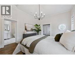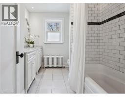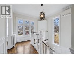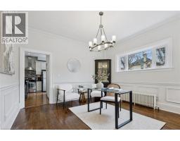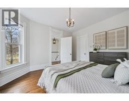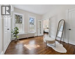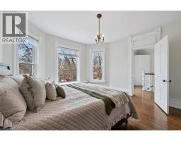 Set on one of the most coveted streets in Dickson Hill with its mature trees and charming globe lanterns, this handsome red brick 2½ storey Century home offers timeless character and elegance. A welcoming front porch leads into a home rich with period details, including hardwood floors, high ceilings, wainscotting, crown molding and leaded glass windows. The main level features a bright, oversized living room with wood burning fireplace and custom built-ins, as well as a formal dining room with stately millwork. The chef’s kitchen is both stylish and functional with quartz and granite counters, stainless steel appliances and a new island that offers additional seating – perfect for breakfast on the go. French doors open into a warm and relaxing family room complete with a feature fireplace wall, floor-to-ceiling windows and heated flooring. Finishing out the main level is a serene 3-season sunroom, a convenient 2-pc powder room and mudroom off the kitchen. Upstairs, the second level is home to three bedrooms, including an impressive primary suite with its own fireplace, dressing room with multiple closets and a spa-inspired bath with soaker tub and walk-in glass shower. An updated 5-pc family bath completes this level. The third floor has two more charming bedrooms, one with a skylight and walk-in closet, as well as a flexible bonus room ideal for a home office or teen retreat. The finished basement has a recreation room with fireplace, bedroom, 4-pc bath, laundry and ample storage—perfect for extended family or weekend guests. Outside you’ll love entertaining on the side porch under a canopy of mature trees and overlooking landscaped gardens. Enjoy a detached two-car garage plus space for four more vehicles off the lane. You’ll love living steps to schools, Victoria Park, downtown restaurants & shops, the Gaslight District and the Grand River. Don’t miss out on this rare opportunity to own one of West Galt’s finest homes. Book your private viewing today! (id:47351)